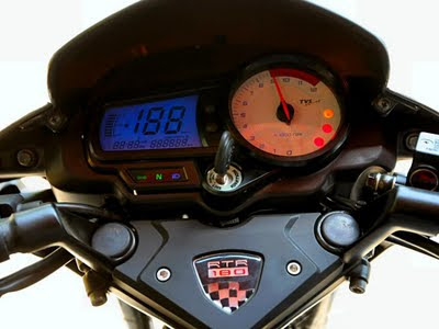 The TVS Apache RTR 180 has got the best speedometer I have seen on Indian bikes. It has a digital speedometer with blue back light and a white face tachometer.The speedometer is a adrenaline pumper on the bike, it has a very good refresh rate as compared to the Pulsar and R15, the pulsar claims a top speed of 144 but it actually does about 135 max, the speedometer is over enthusiastic. The head light is 35w bright with multi reflector and is good for night riding. As compared to other bikes the Apache has a AC battery.